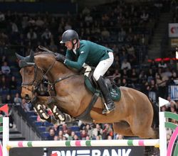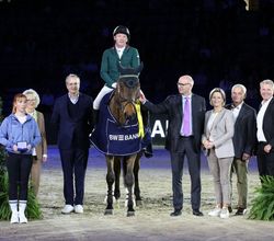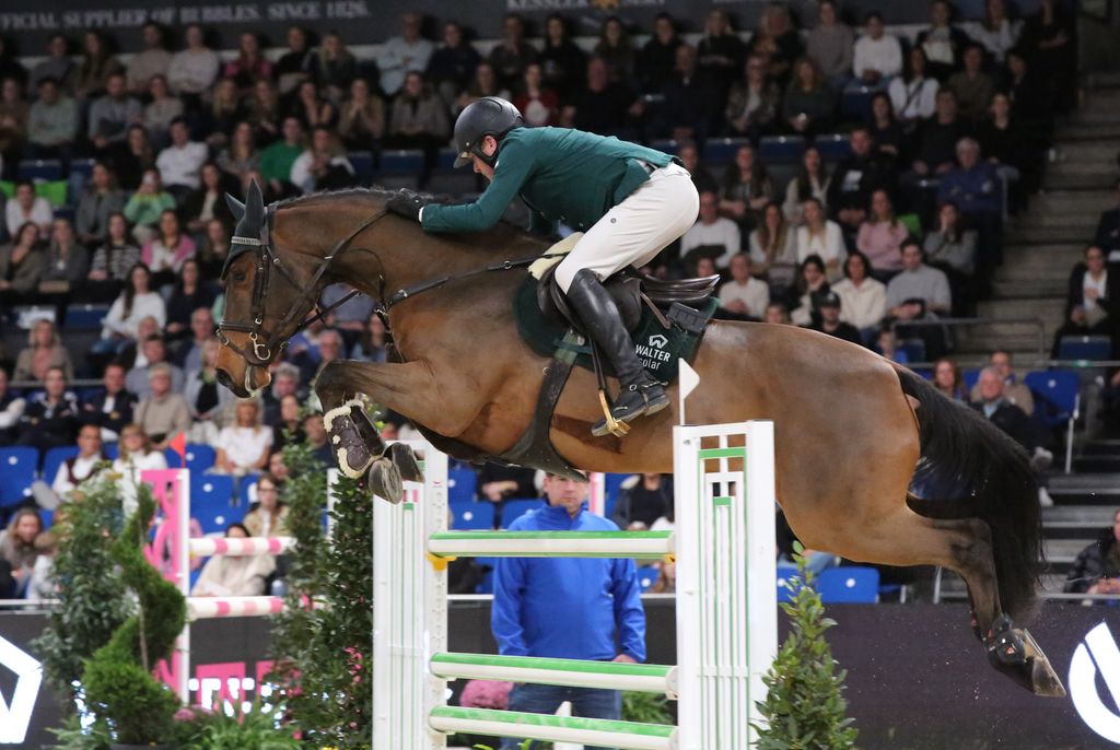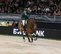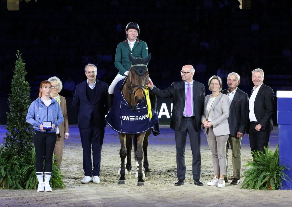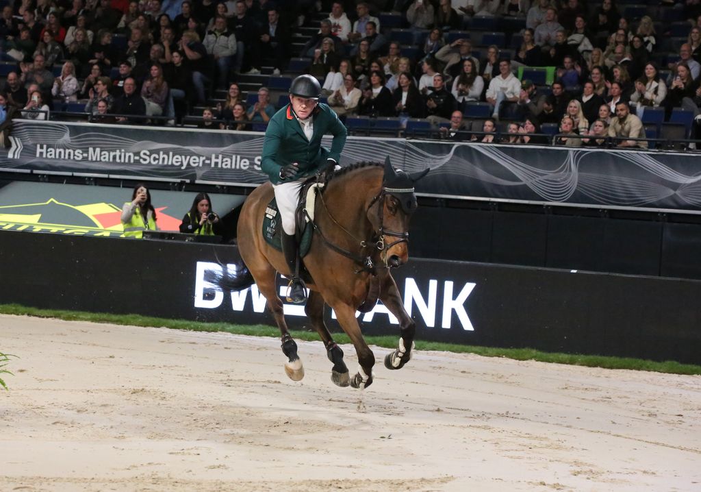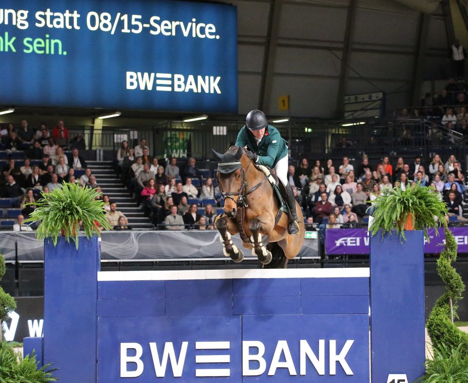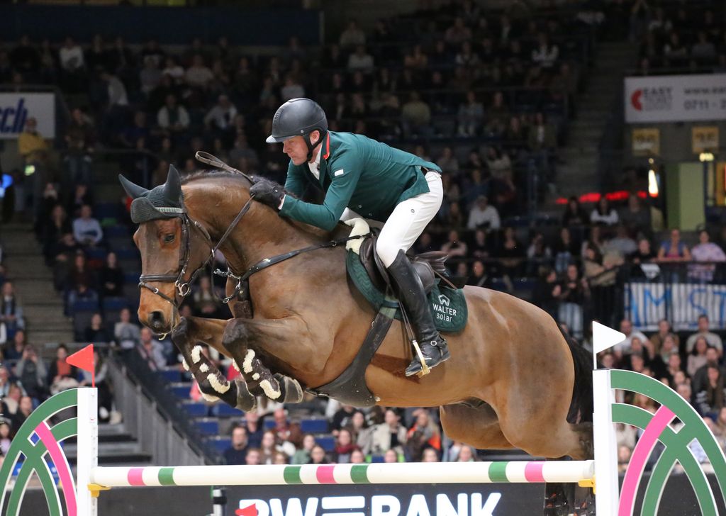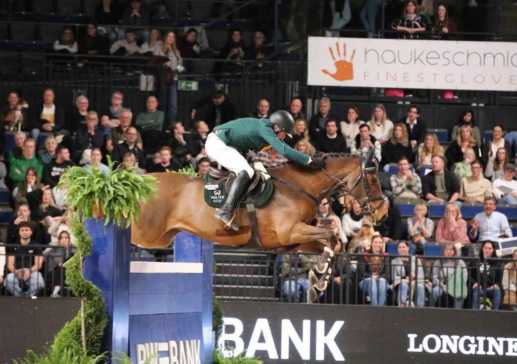 Stuttgart – Jeden Tag ein Sieg: Gestern gewann er den Reittriathlon, am späten Donnerstagabend das BW-Bank Hallenchampionat: Mario Walter. Vor 7.100 Zuschauern setzte sich der 48-Jährige von der RSG Ostalb beim 39. Internationalen Reitturnier STUTTGART GERMAN MASTERS durch. Im Stechen der zehn Fehlerfreien aus dem Umlauf kam er ohne Abwurf mit der schnellsten Zeit durch. Nach 35.01 Sekunden blieb die Uhr stehen – diese Marke konnte die Konkurrenz nicht mehr unterbieten. Im Sattel seines neun Jahre alten Holsteiner Wallachs Mufasa verwies er die Amazone Pia-Luise Baur (TRG Baltmannsweiler), die im Sattel der achtjährigen Oldenburger Stute ohne Abwurf blieb, aber 35.48 Sekunden benötigte, auf den zweiten Platz. Dritter am „Tag der Baden-Württemberger“ in der Hanns-Martin-Schleyer-Halle wurde der für den RSC Tara startende Kanadier Nikolaus Leckebusch-Peters mit der Stute Toulonia Blue S (0/36.41).