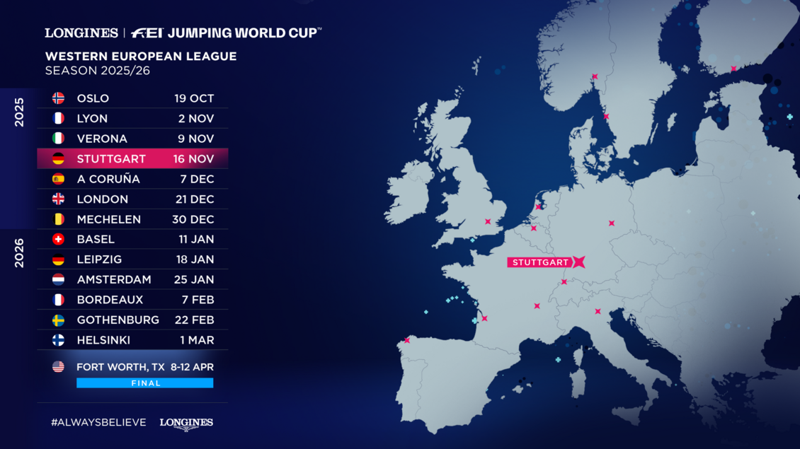 Die STUTTGART GERMAN MASTERS - sind drei Weltcup-Prüfungen. Das macht das Stuttgarter Reitspektakel so herausragend: seit 2002 ist Stuttgart Station der Viererzugfahrer um den FEI Driving World CupTM . Die Springreiter kämpfen um Punkte im LONGINES FEI Jumping World CupTM (seit 2005) und 2012 kam der FEI Dressage World CupTM in der Dressur hinzu. Dazu kommen zwei internationale Pony-Prüfungen der FEI Jumping Ponies’ Trophy.
