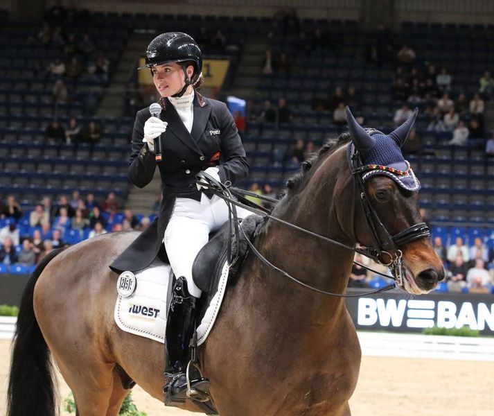 It was therefore no big surprise that she claimed victory in the final of the iWEST Dressage Cup, an Intermediaire I freestyle on Thursday. Riding her 19-year-old gelding Baron, she performed brilliantly and was awarded77.450 per cent.